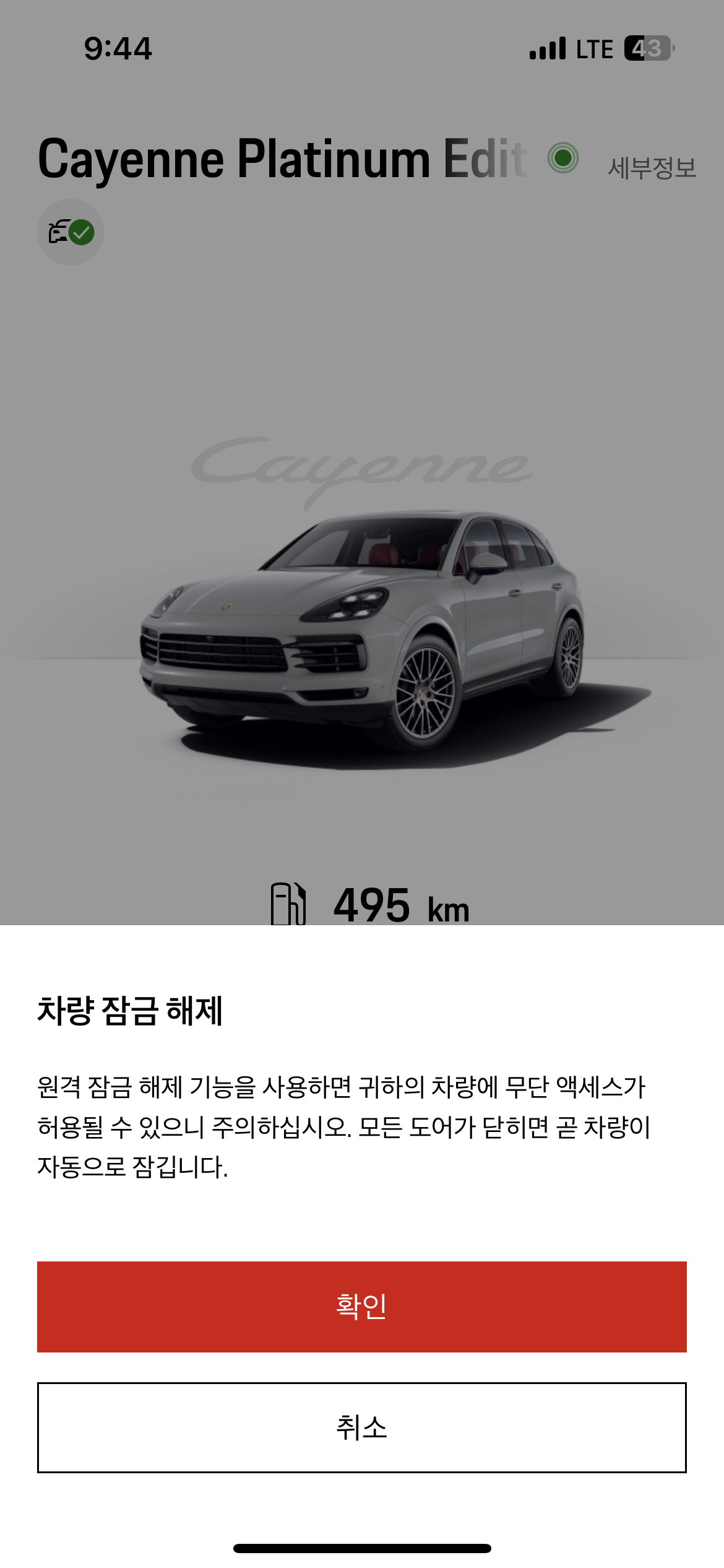 내가 소유한 포르쉐 카이엔도 두 가지 방법으로 차 문을 열고 잠글 수 있다.
