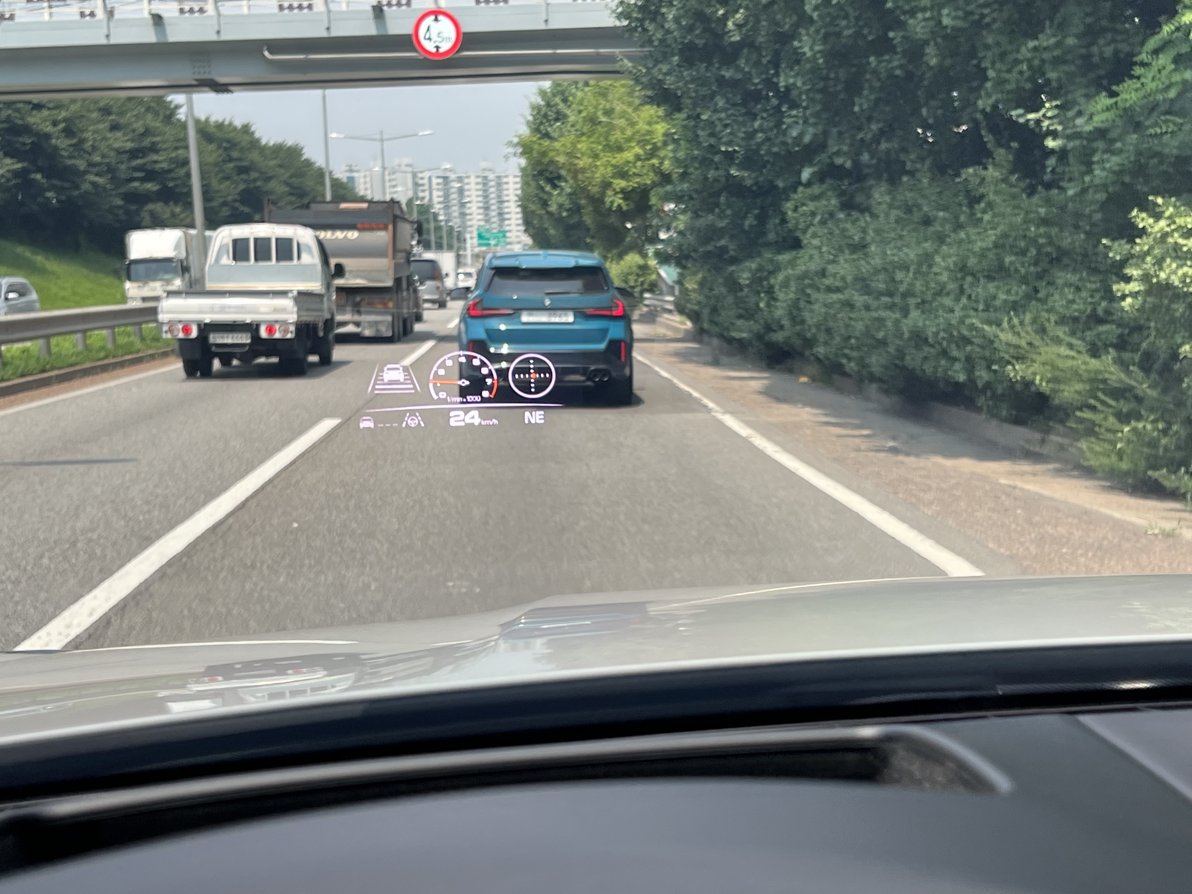 차선이탈도 65km부터 작동한다. 강하게 안으로 밀어 넣어 주는데..가운데 차선으로 정확하게 넣어주지는 않는다.