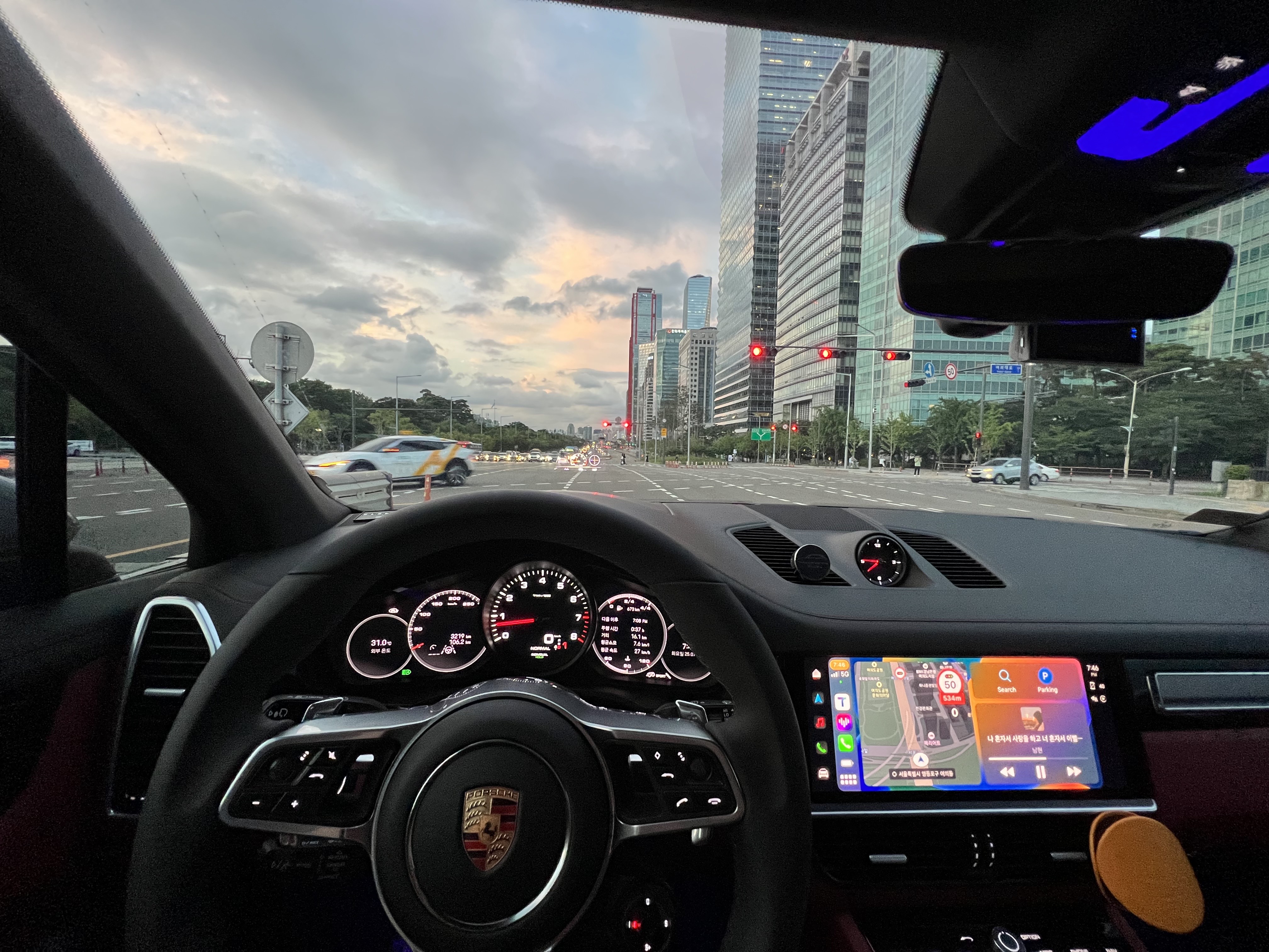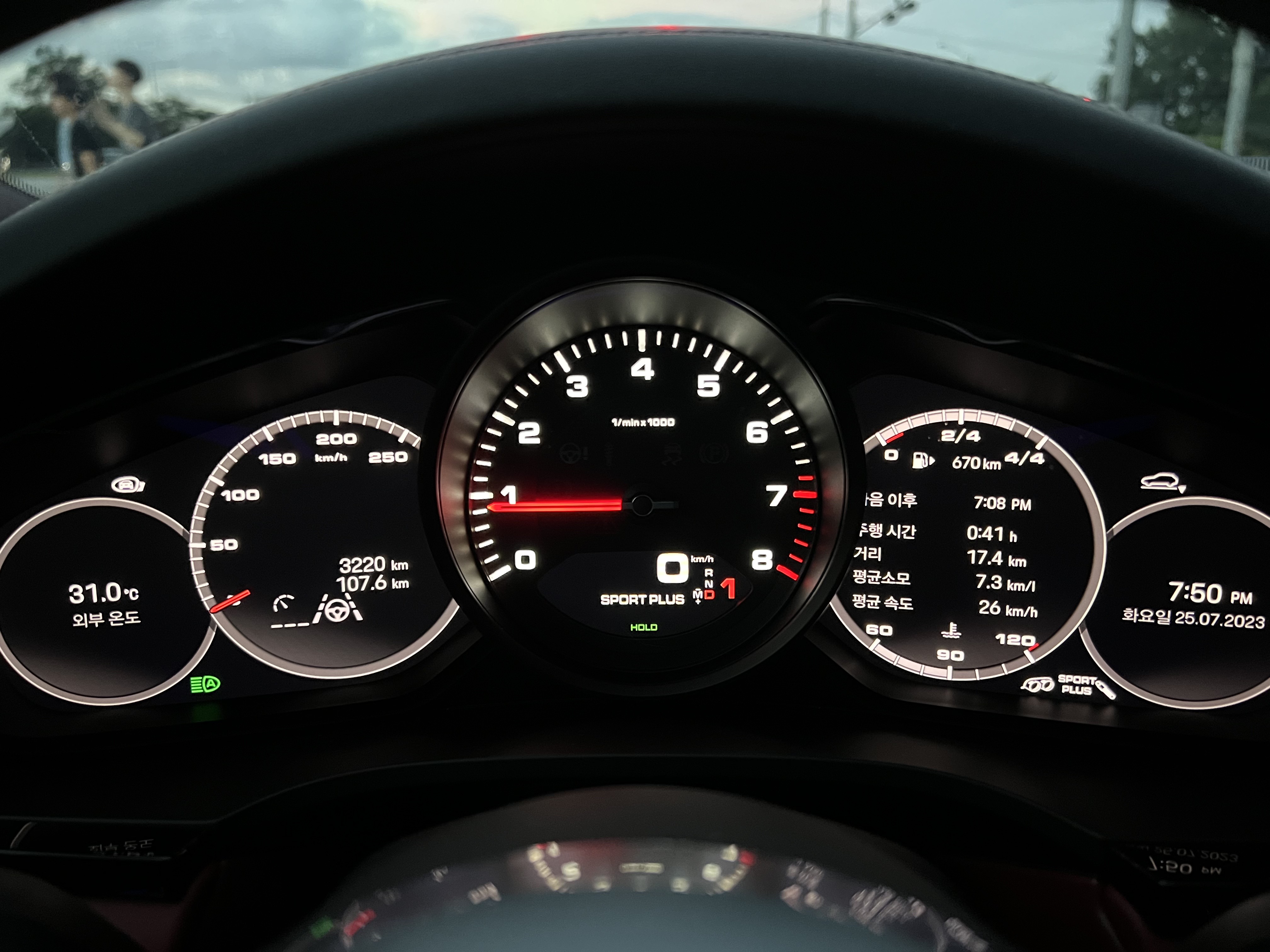 한 가지 아쉬운 점이 있다면, 화면이 변하지 않는다는 것! 내가 몰던 예전 차량들은(BMW) 스포츠, 스포츠플러스 모드를 선택하면 디스플레이가 스포티하게 변해 시각적 즐거움을 주는데....카이엔은 관련 인포만 살짝 주고 암껏도 없다!! 심지어 HUD에도 표시가 없다 ㅠㅠ. 어찌보면 이런게 디테일인데..좀 아쉽다.
