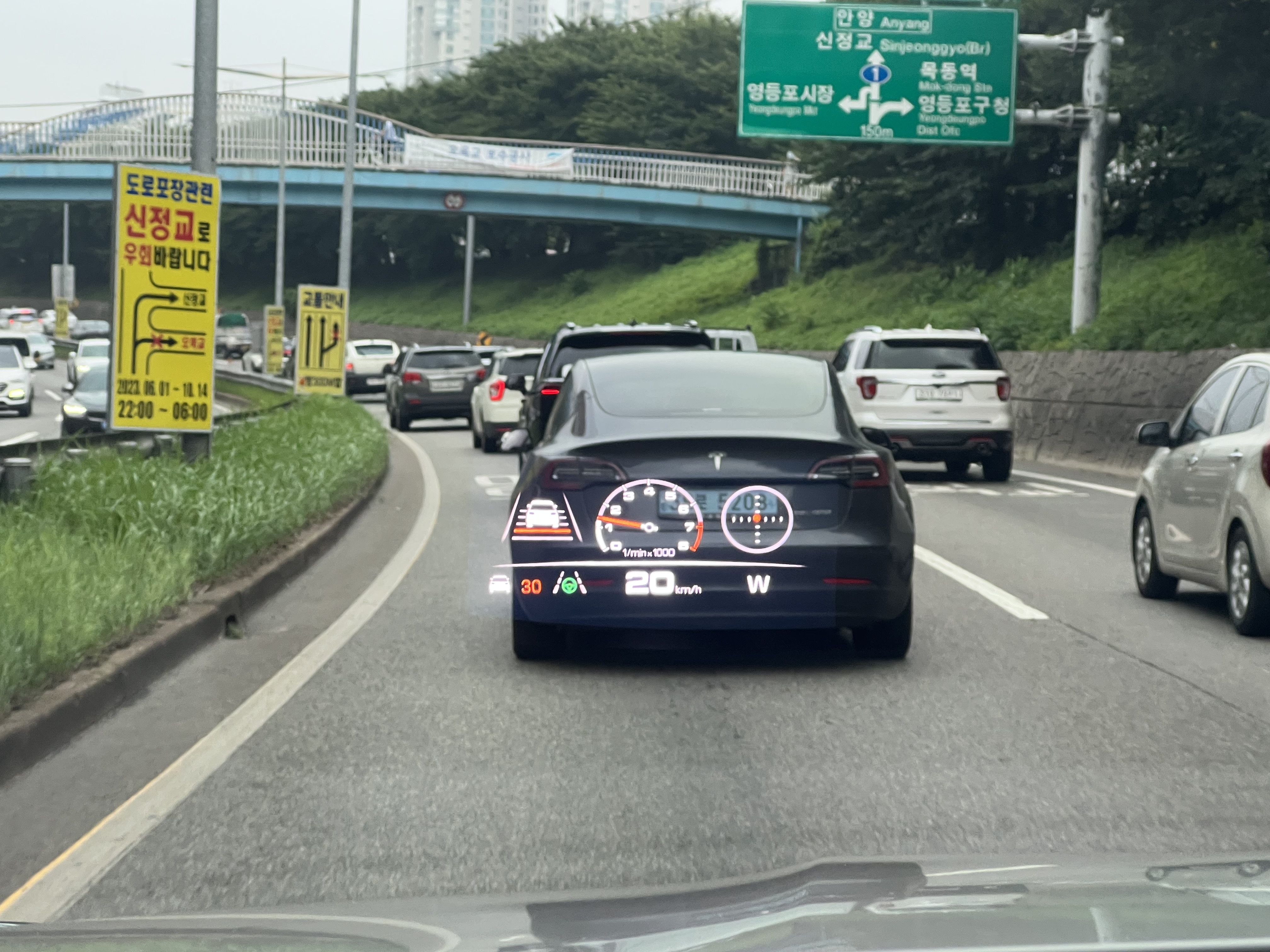 꽤 선명하다. 속도계로만 사용했다가 이래저래 아까워서 몇 가지 인포를 넣어봤다. 반자율을 켜면 자동으로 표시가 되는 것이고, 자의적으로 알피엠 게이지, 지포스(차량 무게중심), 차향이동방향(동서남북)등의 정보를 넣어봤는데 본인 입맛에 맞는 정보를 넣으면 될 것 같다.