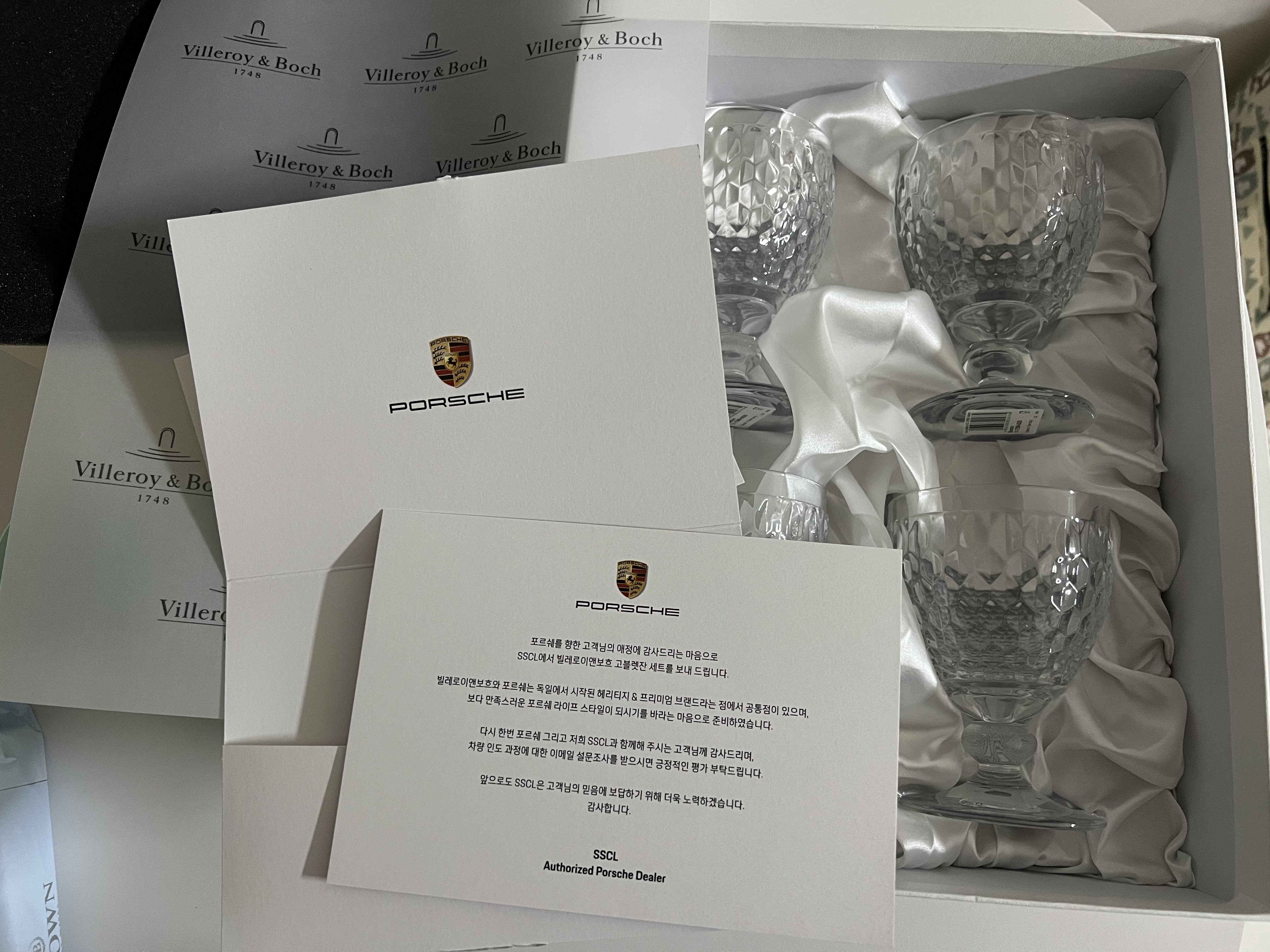 출고 후 일주일이 지나 딜러사에서 선물이 왔다. 와인잔이다. 소주파인 나에게는 큰 의미는 없지만..그래도 선물은 언제나, 무엇이든 기분이 좋다. 파일런은 출고 후 2달 후에 수령 가능하다고 한다.